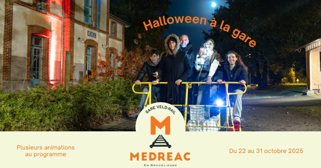 Pendant les vacances d’automne, la gare vélo-rail de Médréac vous propose diverses animations spéciales Halloween, dans une gare décorée de citrouilles, fantômes et araignées pour l’occasion.